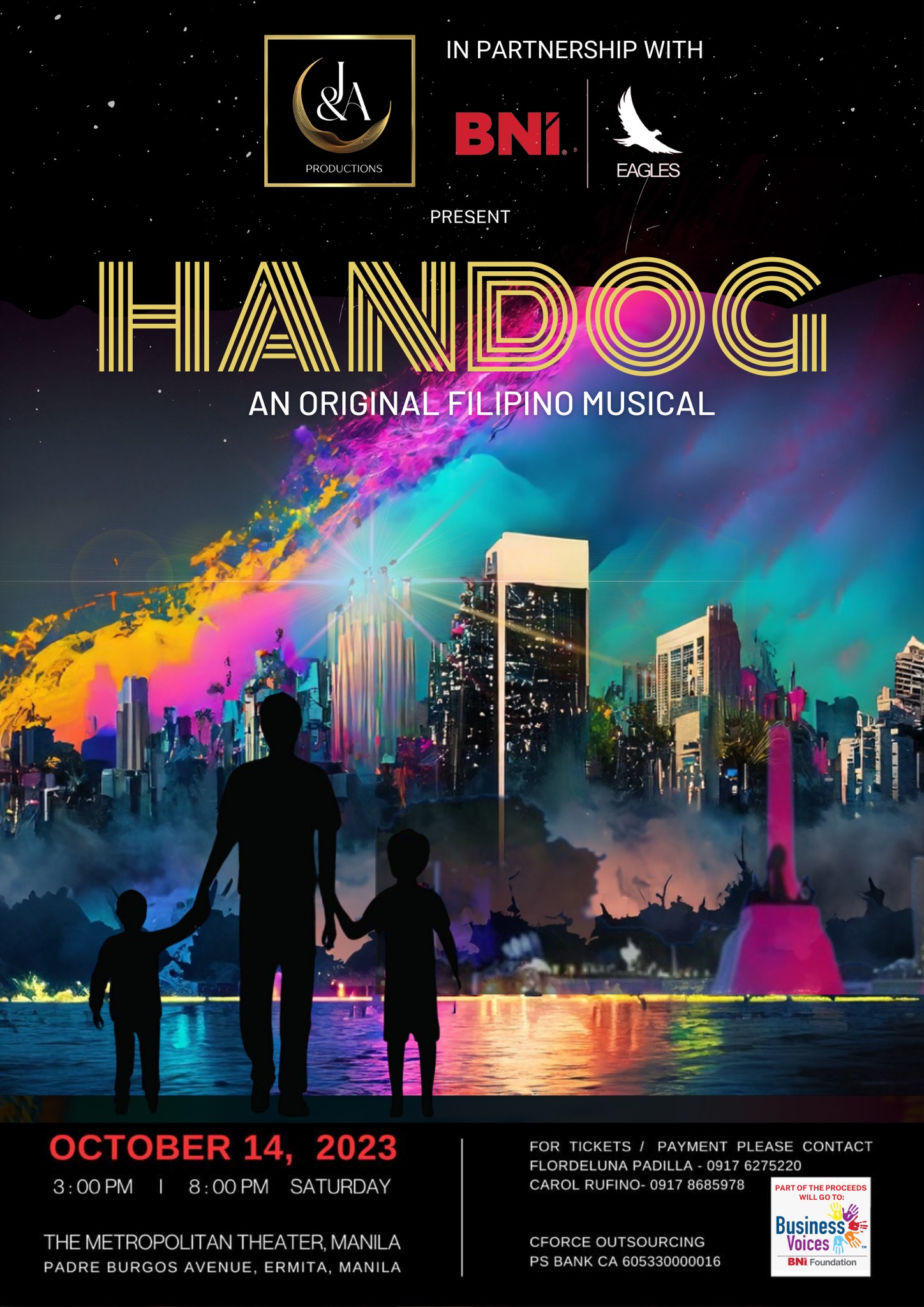 #HappeningPH #HANDOGOriginalFilipinoMusical #HANDOGtheMusical #BNIEagles #Giving #GiversGain #SelfDiscovery #family #relationships #musical #originalmusical #filipinomusical #originalfilipinomusical #HANDOGmusical2023 #ManilaMetropolitanTheater #maidenproduction #J&AProduction #Philippinetheater #Philippinetheaternews #onstageinOctober #onstage #Philippinetheaterarts #Filipinothespians #Filipinotheater #musicalforacause